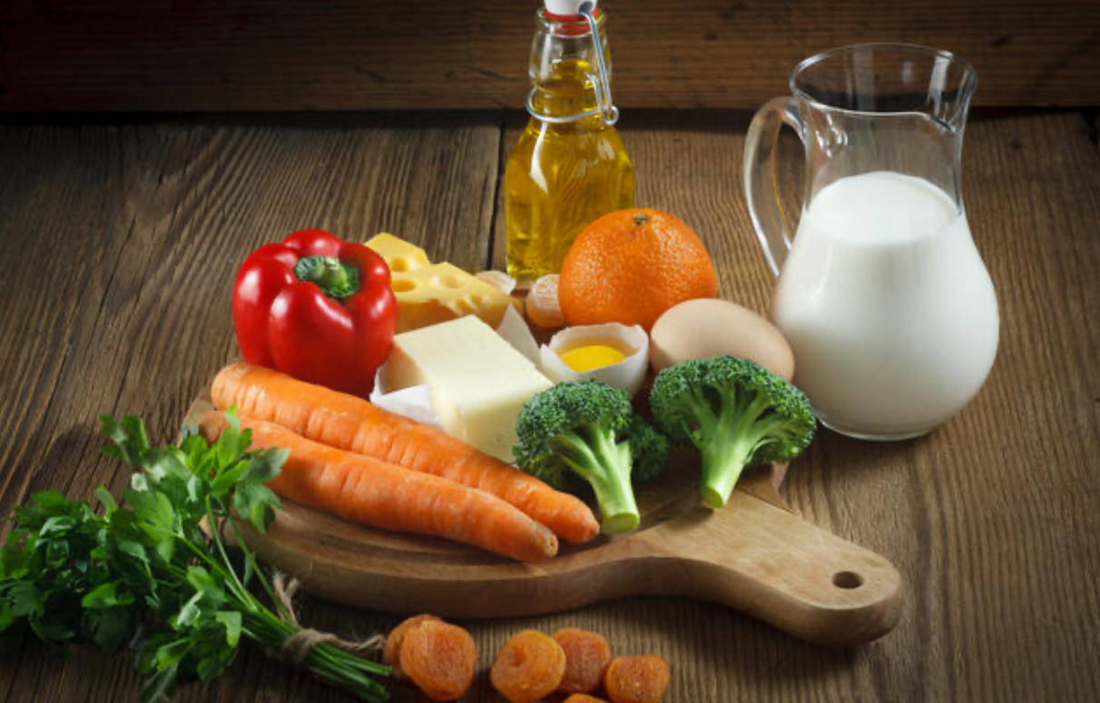 La vitamine A est obtenue par l’alimentation sous deux formes. La vitamine A préformée (rétinol et ester de rétinyle) provient de sources animales telles que la viande, les produits laitiers et le poisson. La provitamine A (bêta-caroténoïde) provient des fruits et légumes colorés. Les deux formes ingérées de vitamine A doivent être converties en rétinal et en acide rétinoïque après absorption pour soutenir les processus biologiques.